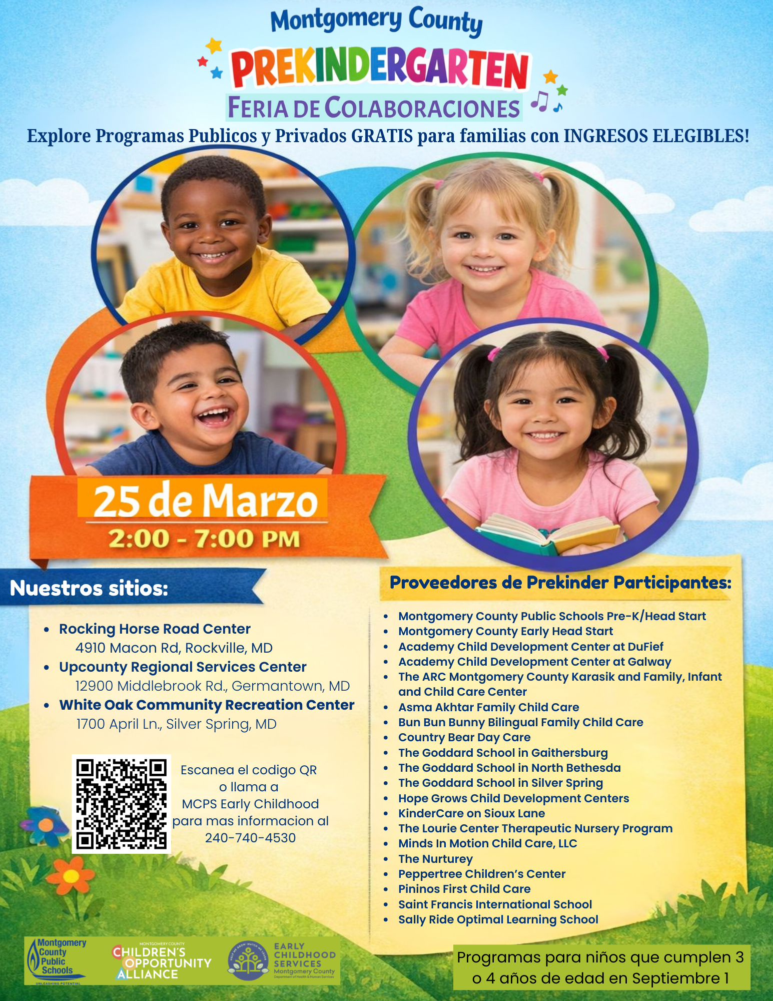 Haga clic aquí para obtener una lista completa de las Asociaciones de Proveedores Privados de Pre-K con MCPS. Si hace clic aquí, saldrá del sitio web de MCPS e irá a una página de información de socios.