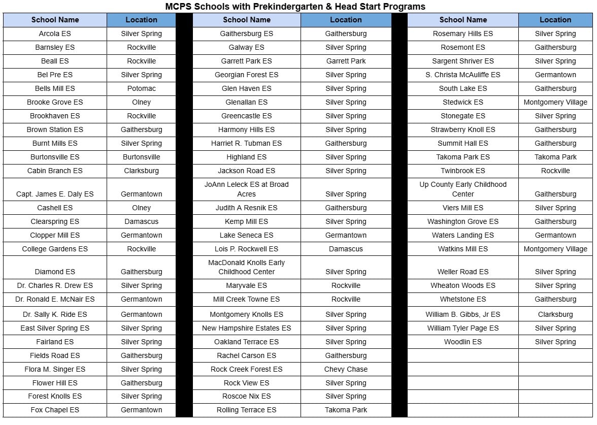 Click here for a full list of Pre-K Private Provider Child Care Partnerships. If you click here you will be leaving the MCPS website and going to a partner information page.