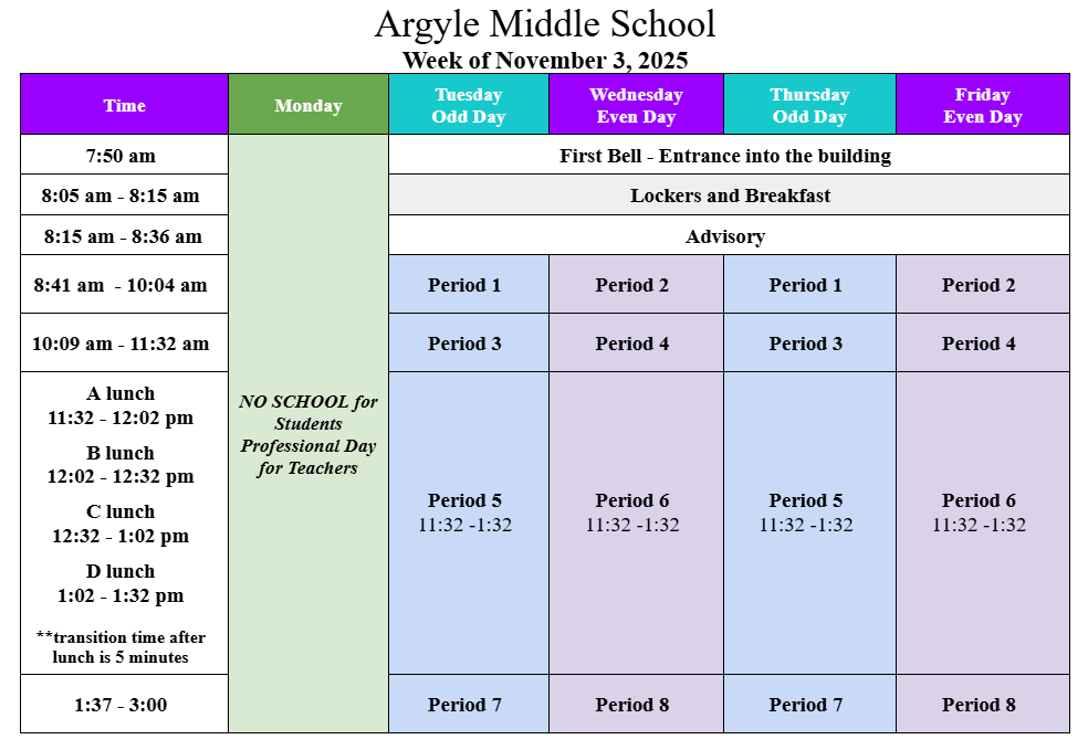 Argyle MS summer school will run from July 7th through August 1st. Click here for more information.