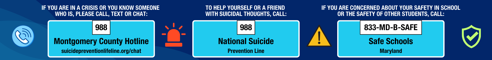 MCPS recognizes the impact that a student's mental health has on learning and achievement. All schools and classrooms provide curriculum, programs, and strategies that foster the academic success and physical, social, and psychological well-being of all students, grades PreK-12. Our goal is to give students access to experiences that build social skills, leadership, self-awareness, and caring connections to adults in their school and community.