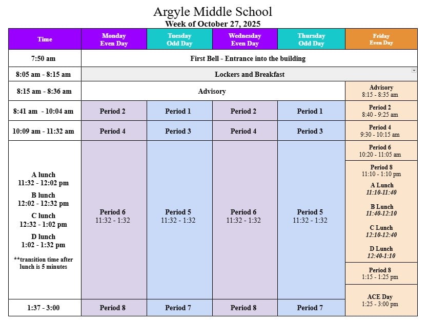 Argyle is eager to welcome our new 6th grade students and families! We are hosting two summer mini-orientations on Thursday, August 7 at 10:00 am and 3:00 pm. These hour-long sessions will include general school information, a building tour, and an opportunity to meet some of our amazing staff members.