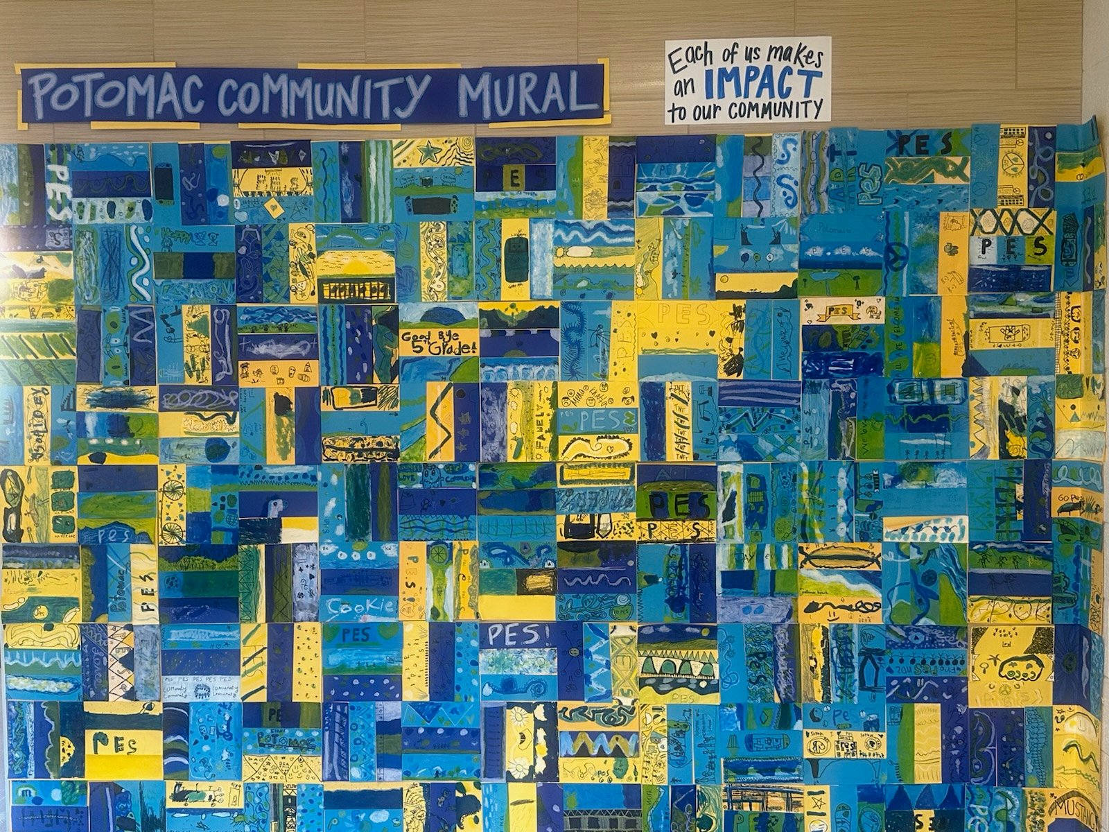 Potomac Elementary has an artists-in-residence program which is sponsored by the PTA. The residencies vary from poetry to painted murals and add a component to the program where students can work with poets and artists. Our partnerships with these artists have created permanent art pieces for our school, which enhance the environment for students, staff, and the community. Students develop a deeper appreciation for art, because they are involved in the creation of permanent works.