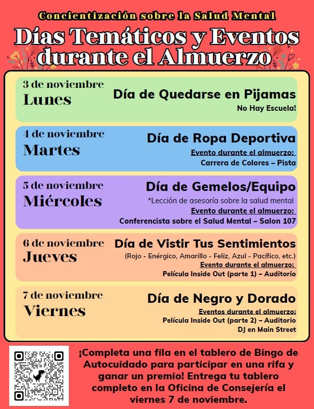 Join us as we celebrate Mental Health Awareness Week with themed Spirit Days, special lunch events, and activities that promote self-care, connection, and positivity!