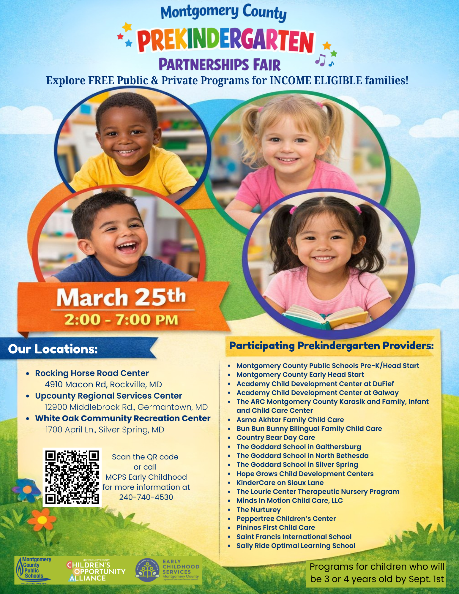 Click here for a full list of Pre-K Private Provider Child Care Partnerships. If you click here you will be leaving the MCPS website and going to a partner information page.