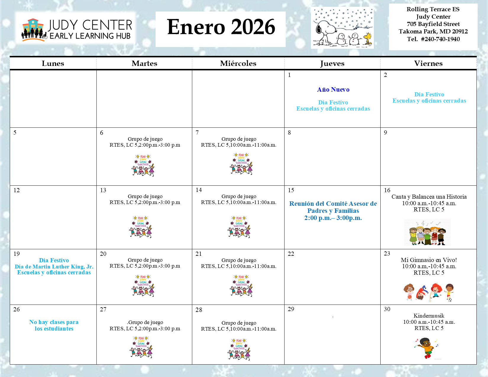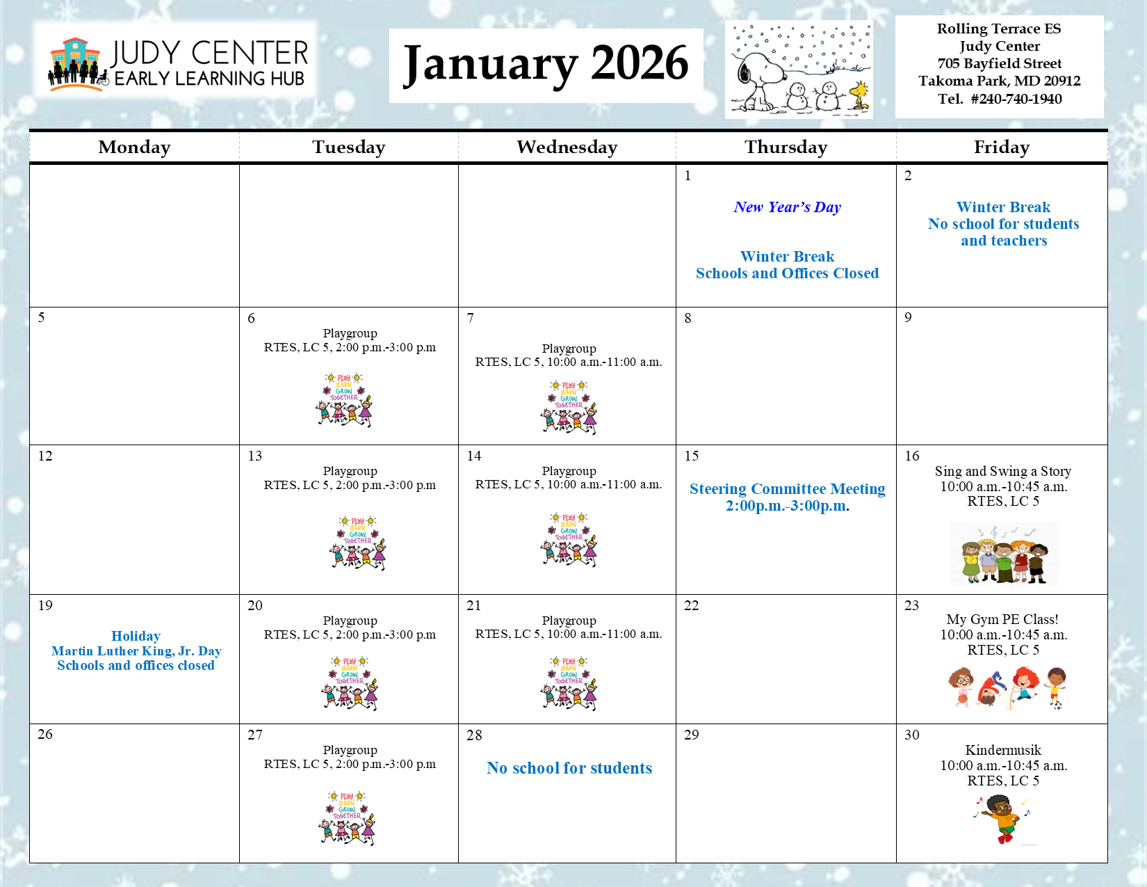 Contact the Rolling Terrace E.S. Judy CenterPhone: 240-740-1940