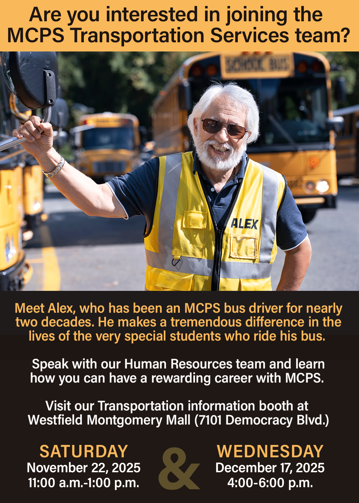 For information on Montgomery County Public Schools transportation policies and other information, click on the following links: