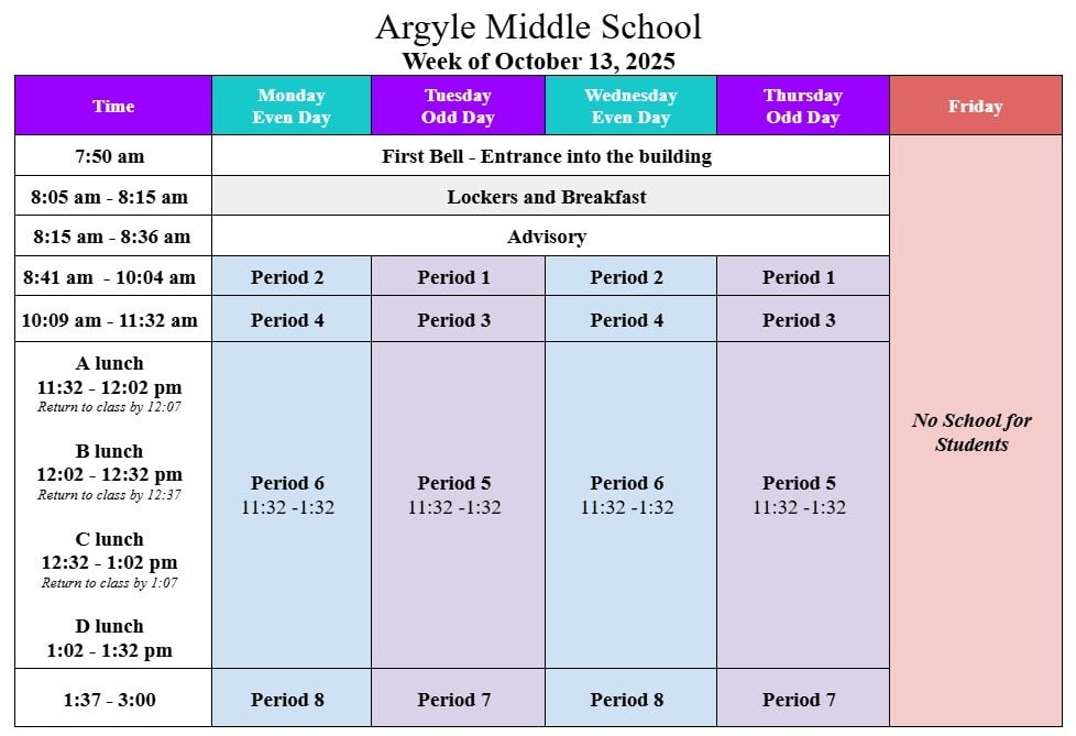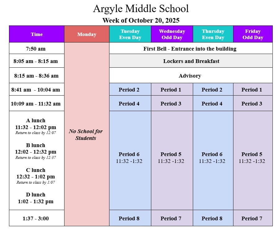 Argyle MS summer school will run from July 7th through August 1st. Click here for more information.