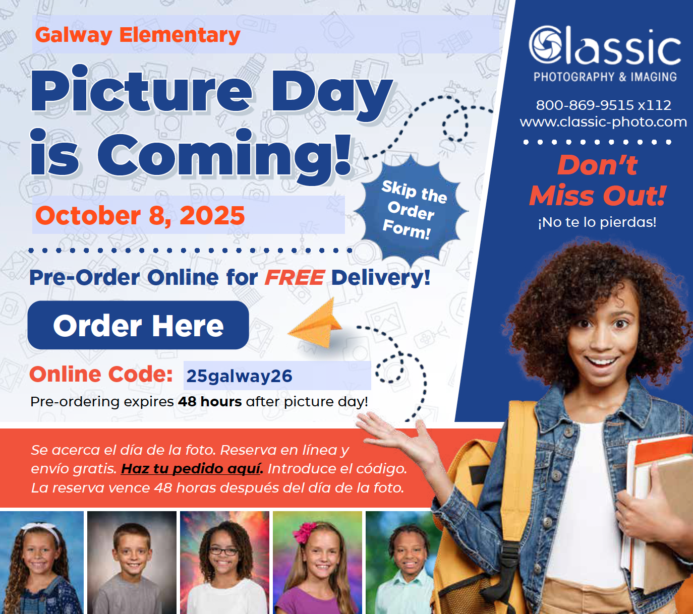 Picture Day Individual student portraits will be taken on Oct. 8 and 9. Use the link below to order portraits online. https://shop.imagequix.com/g1001274385