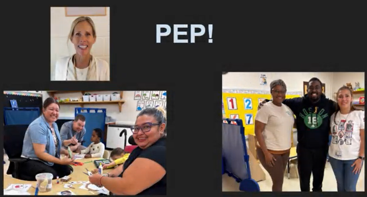 Much like community preschools, a PEP class is a two and one-half hours per day program. Typically, a class of nine students is taught by a special educator and a paraeducator in a curriculum and play-based instructional program. Related service providers and a parent educator provide services periodically throughout the week. PEP classes sometimes serve children with significant physical disabilities. Assistive technology and augmentative communication activities are integrated into the classroom program.