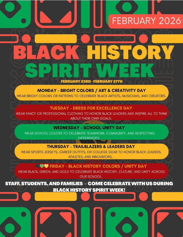 We’re excited to celebrate Black History Month with meaningful, schoolwide activities centered on this year’s theme, “Black History Is Expression: Art, Music, Movement, and Voice.” Throughout the month, students will engage with Black history across classrooms and specials, experiencing learning through creativity, sound, and movement.