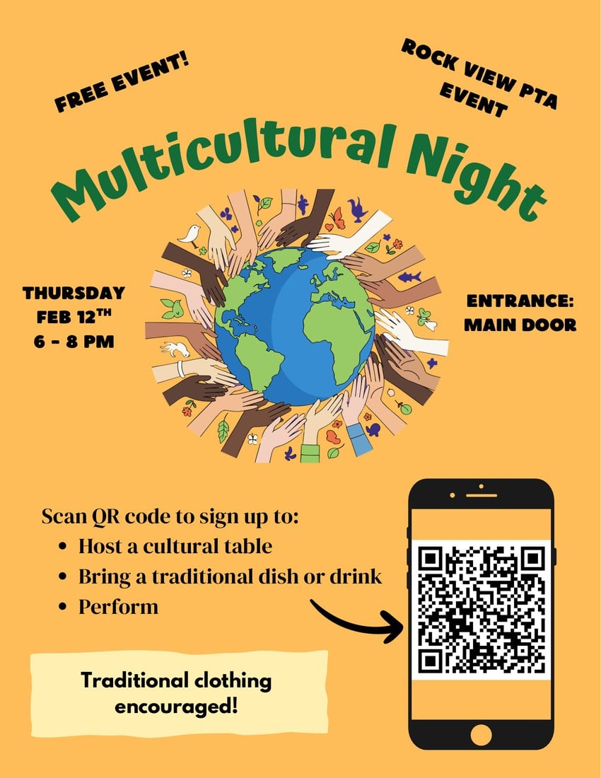 Come join us at this year's Multicultural Night on Thursday, February 12 from 6-8 pm! There will be food, music, dancing, and a performance by Albert Einstein HS's Titanes Salseros!