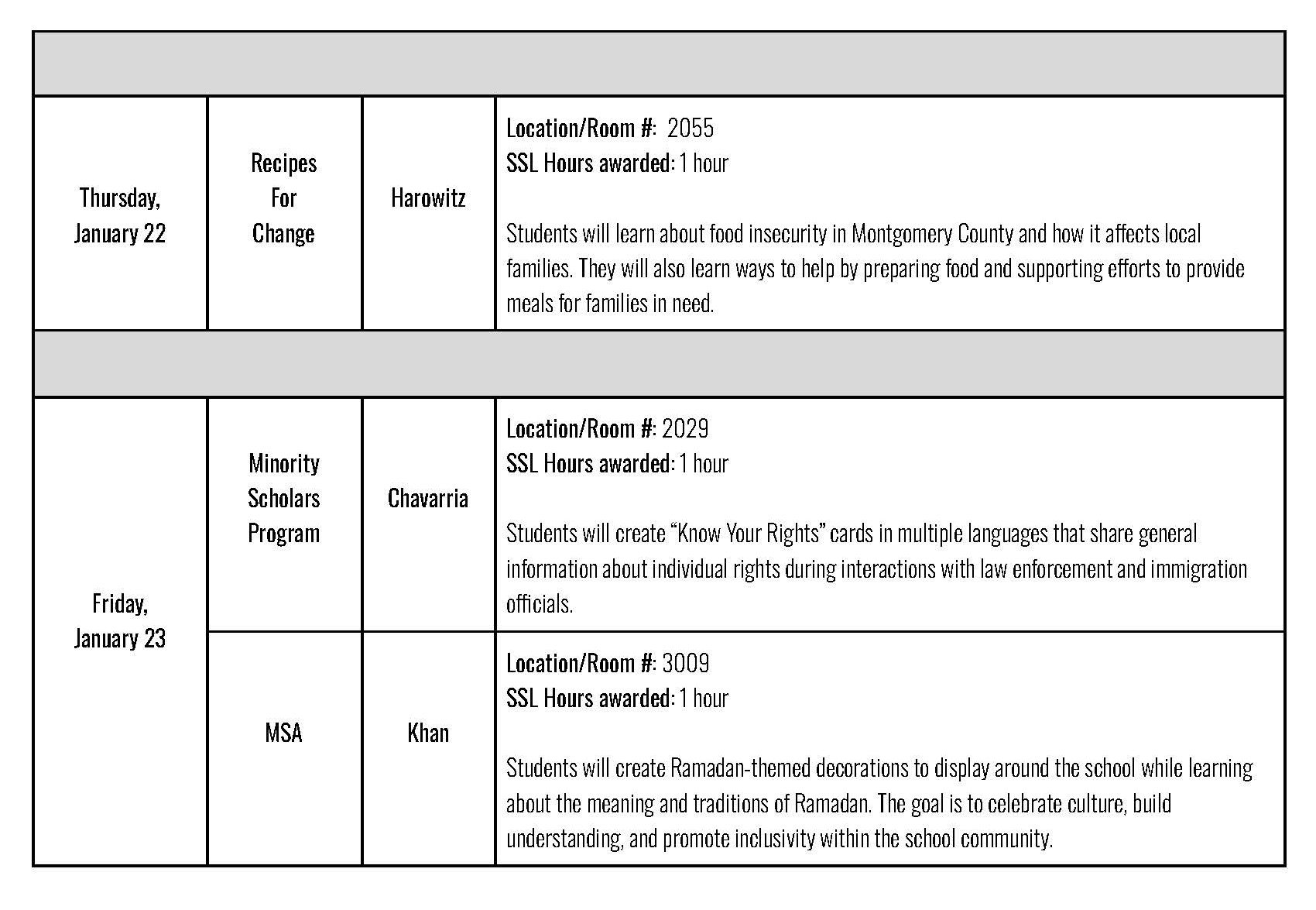 Rockville High School will honor Dr. Martin Luther King Jr. through its MLK Week of Service. Students can participate in meaningful service activities that promote inclusion, leadership, and giving back to the community while honoring Dr. King’s legacy of service.