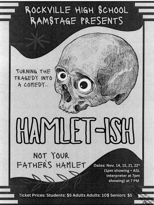 Join us for the Rockville High School production of Hamlet-ISH. The show dates are November 14, 15, 21, & 22* (1:00 p.m. showing + ASL interpreted show at 7:00 p.m. See flyer for prices and more details.