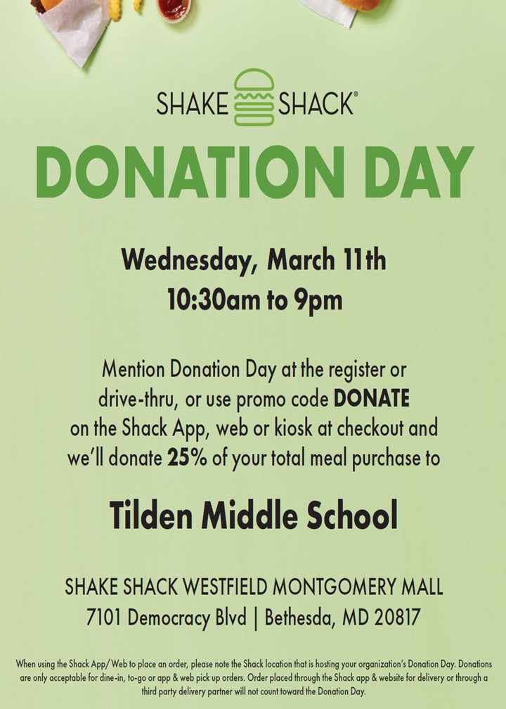 March 11, Tilden Night at Montgomery Mall! Chipotle and Shake Shack