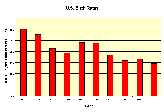 Answers for birth rates: 1960 -- birth rate was 23.75 per 1000; 1990 -- birth rate was 16.72 per 1000. |